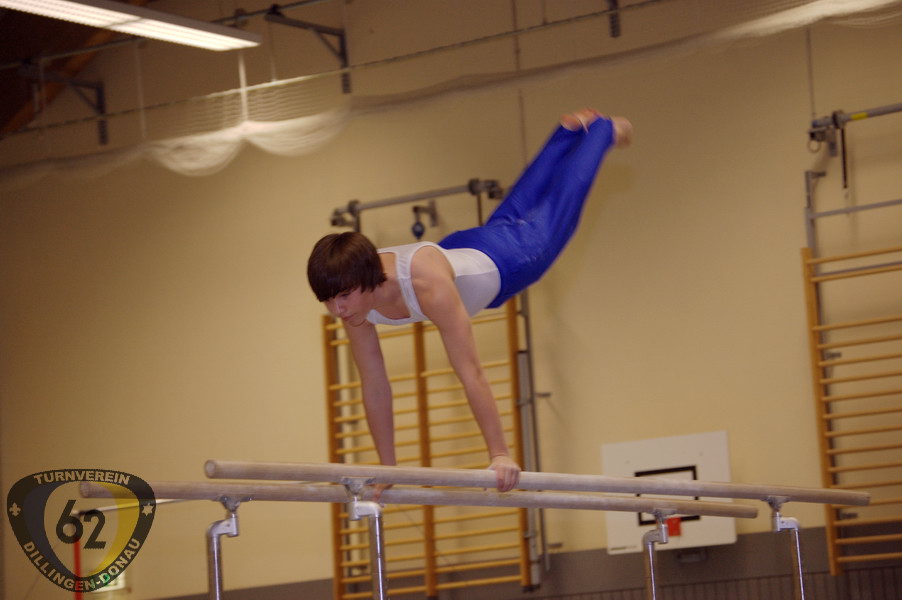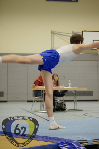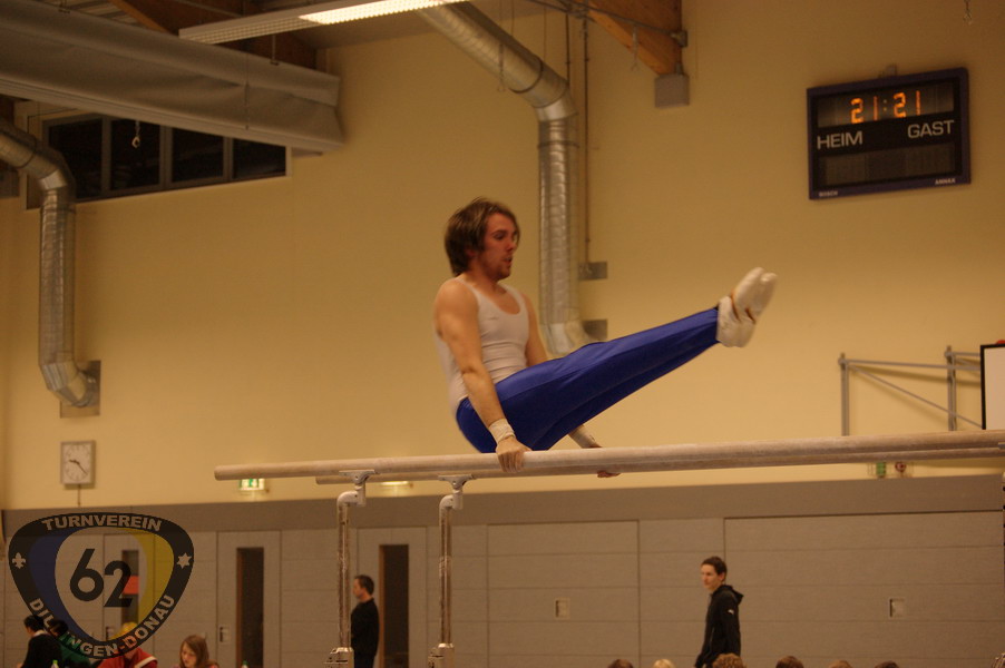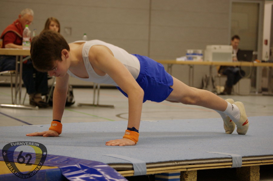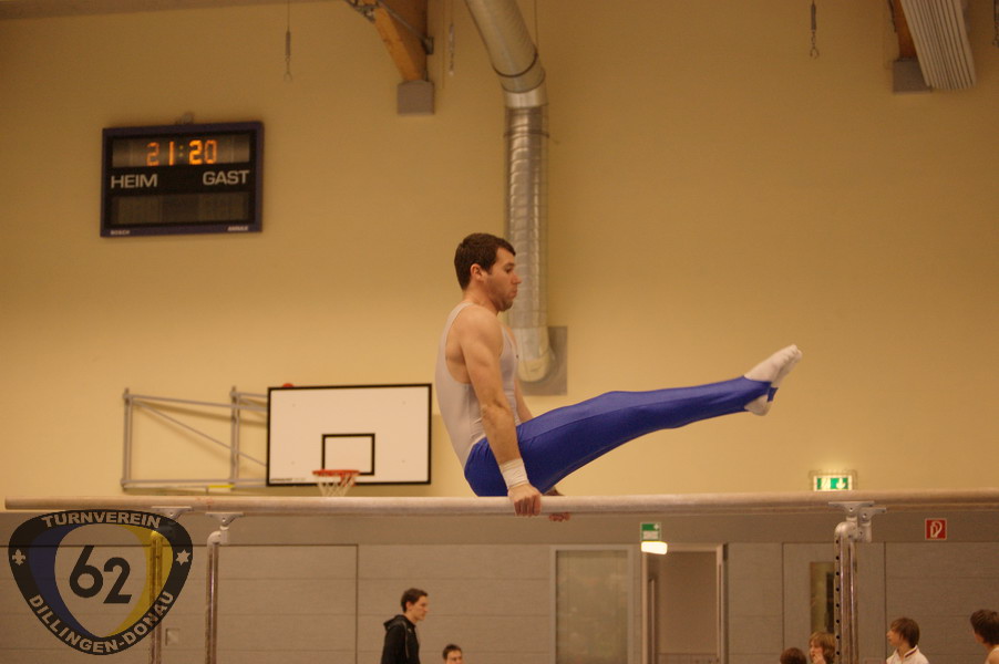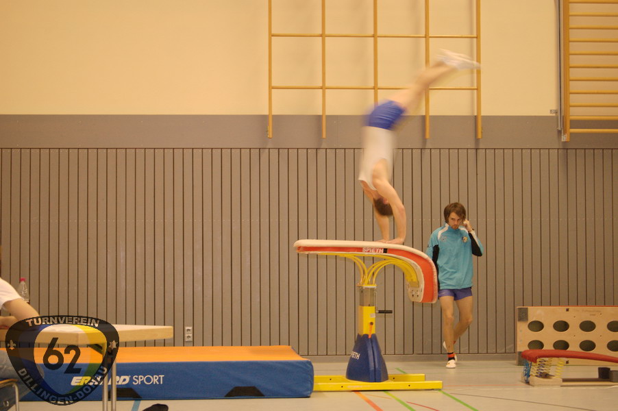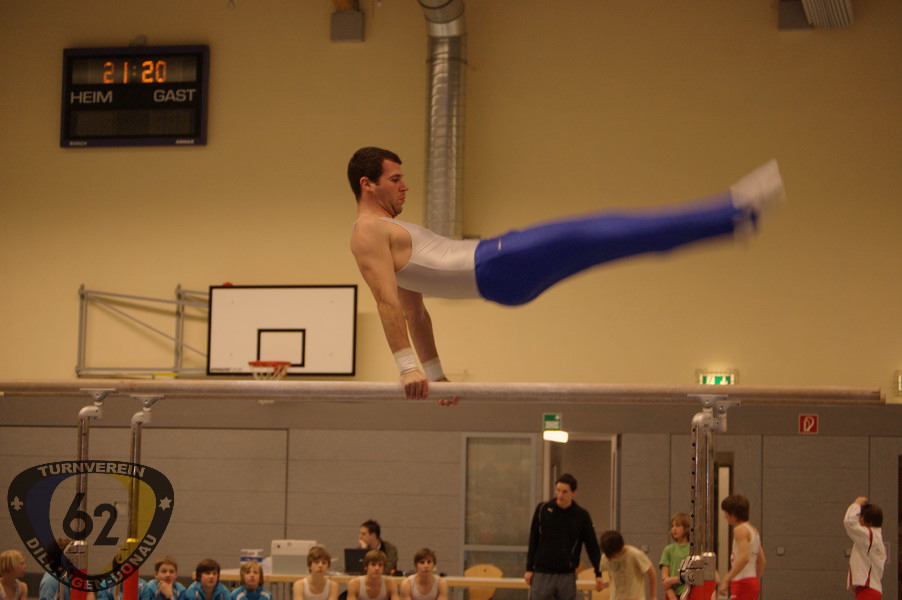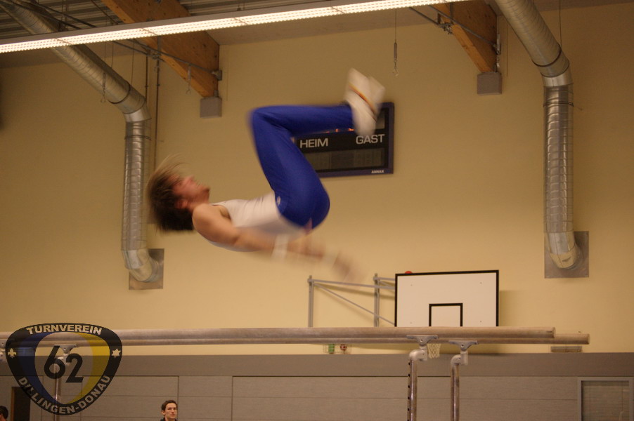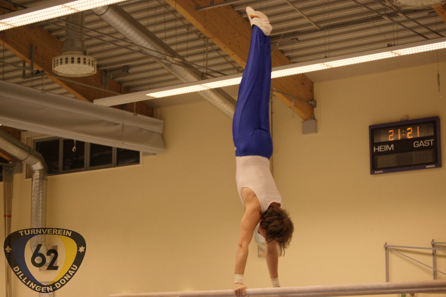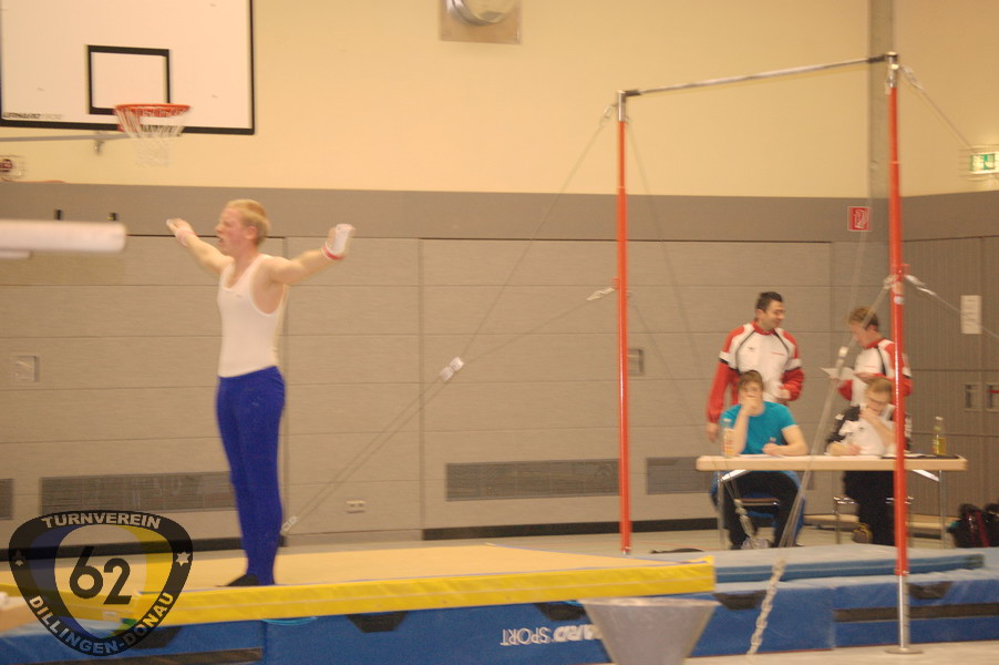 Die Turner des TV 1862 Dillingen landeten auf dem vierten Platz von – in dieser Altersklasse erwähnenswerten – fünf teilnehmenden Mannschaften. Das geschwächte Team musste ohne die Hilfe von Matthias Wörner, Vinzenz Schweizer und Michael Schweizer an den Start gehen. Michael – der wegen seines Abiturs verhindert war, hat sich vorgenommen, am nächsten Wettkampf die Turner mit seinem Können zu unterstützen. In der Einzelwertung kamen Matthias Heckes (Platz 10) und Thomas Fritsche (Platz 1) in die Top10 der besten Turner. Dies bedeutet jedoch nicht, sich auf den Lorbeeren auszuruhen, denn schon mit hauchdünnen 0,05 Punkten Rückstand wartet Manuel Ristagno vom TSV Wertingen I auf Platz 2.
