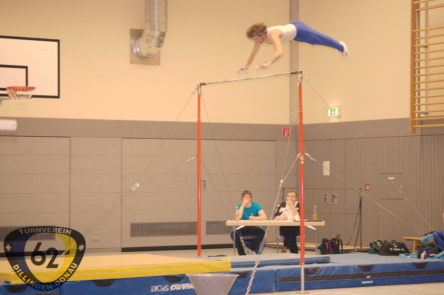 Die Turner des TV 1862 Dillingen landeten auf dem vierten Platz von – in dieser Altersklasse erwähnenswerten – fünf teilnehmenden Mannschaften. Das geschwächte Team musste ohne die Hilfe von Matthias Wörner, Vinzenz Schweizer und Michael Schweizer an den Start gehen. Michael – der wegen seines Abiturs verhindert war, hat sich vorgenommen, am nächsten Wettkampf die Turner mit seinem Können zu unterstützen. In der Einzelwertung kamen Matthias Heckes (Platz 10) und Thomas Fritsche (Platz 1) in die Top10 der besten Turner. Dies bedeutet jedoch nicht, sich auf den Lorbeeren auszuruhen, denn schon mit hauchdünnen 0,05 Punkten Rückstand wartet Manuel Ristagno vom TSV Wertingen I auf Platz 2.