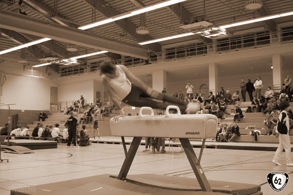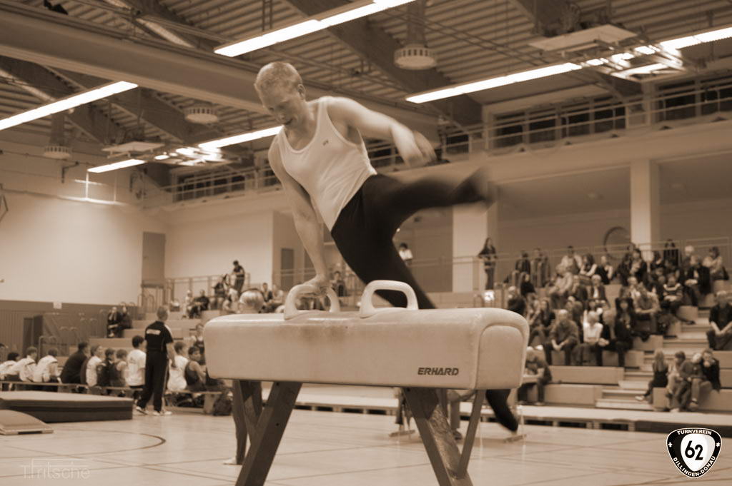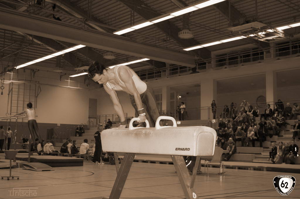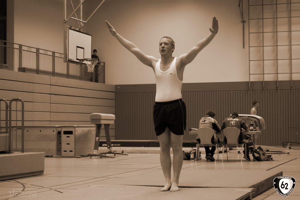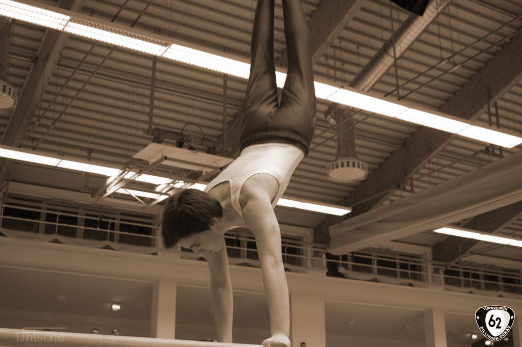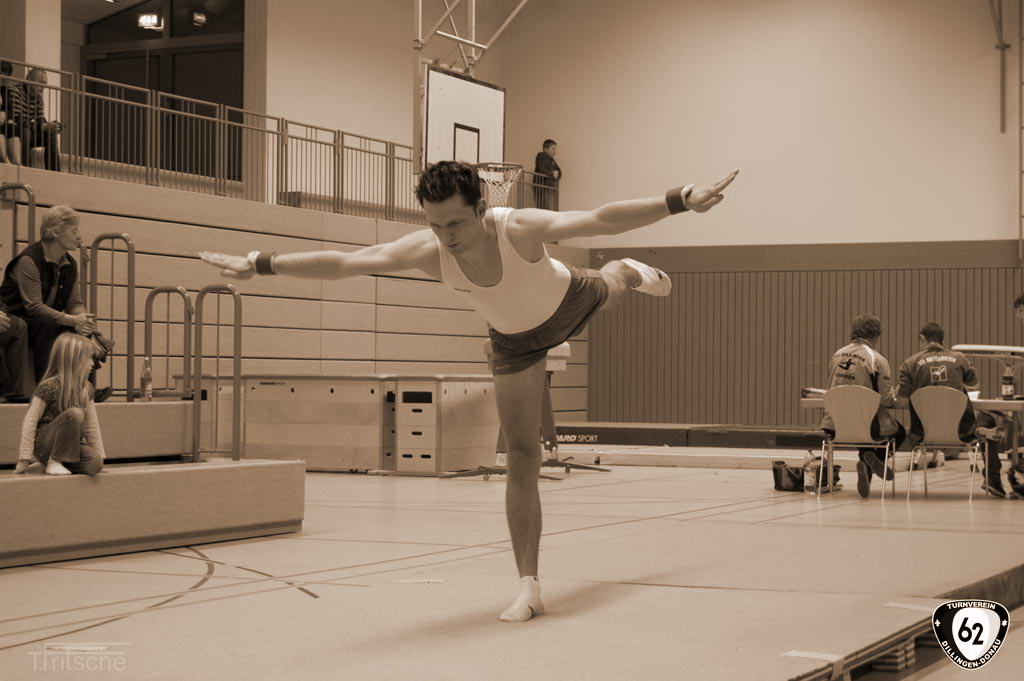 Die Turner gingen in Wertingen ohne Vinzenz an den Start, der sich aufgrund einer Handgelenksverletzung schonen musste. Dennoch überzeugten die Dillinger mit hohen Wertungen. Nur so konnten sie sich gegen die unerwartet starken „Senioren“ (Ø Alter 42 Jahre) aus Deiningen durchsetzen und ganz knapp mit einem Punkt Vorsprung den Sieg holen. Dabei übertrumpfte Matthias Wörner den jahrelangen erstplatzierten Thomas Fritsche in der Einzelwertung um weitere 0,6 Punkte. Matthias Heckes musste verletzungsbedingt einen Gang zurückschalten.