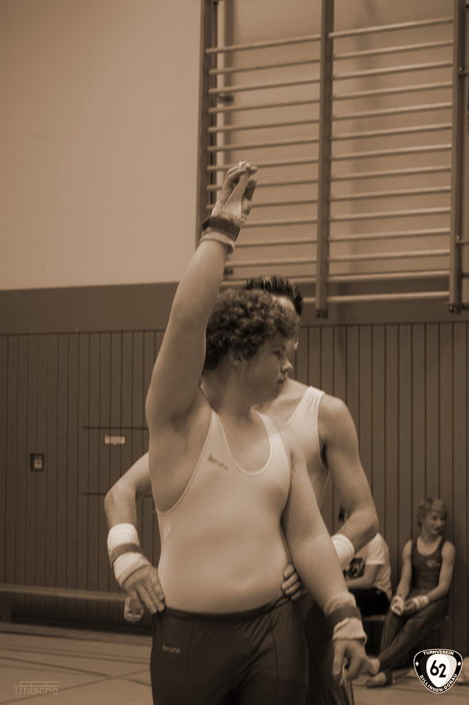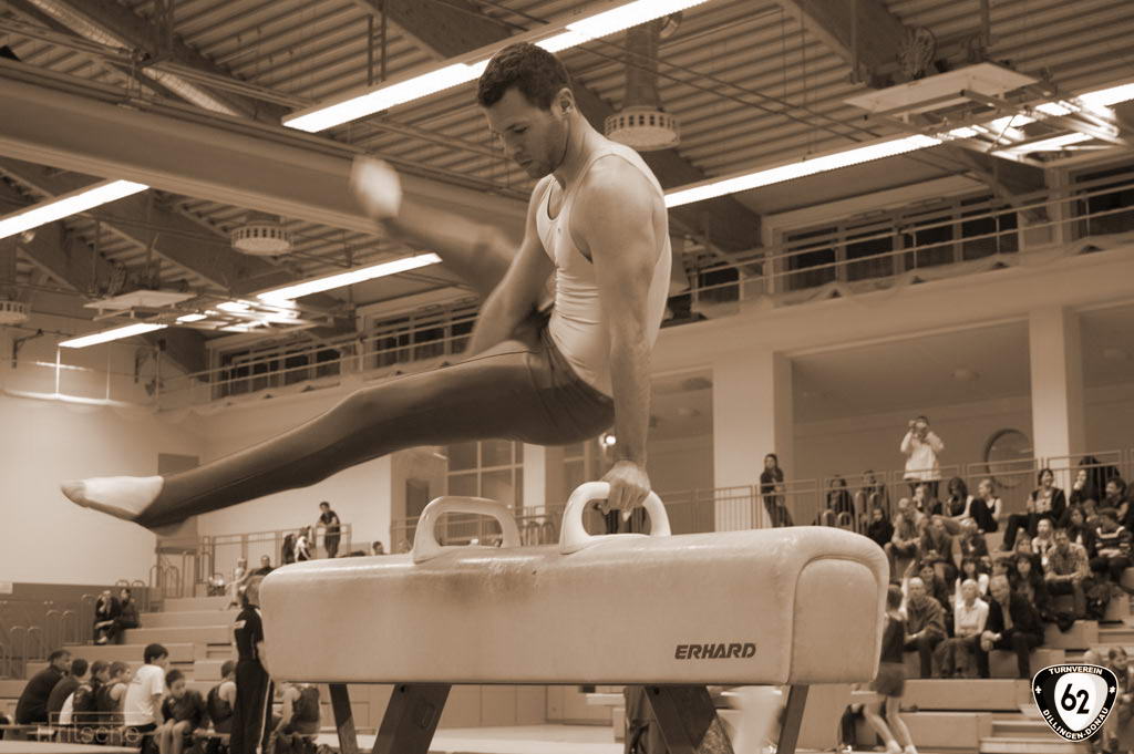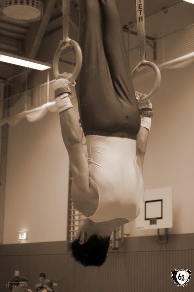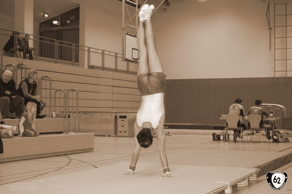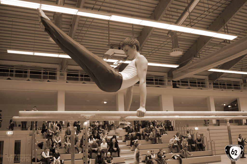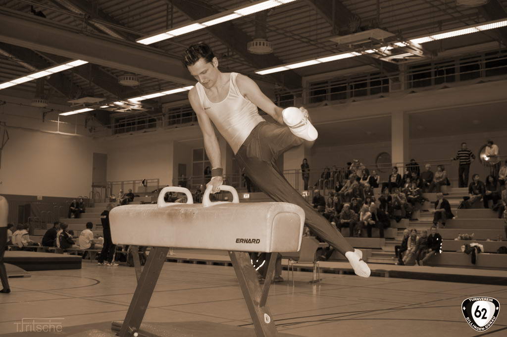 Die Turner gingen in Wertingen ohne Vinzenz an den Start, der sich aufgrund einer Handgelenksverletzung schonen musste. Dennoch überzeugten die Dillinger mit hohen Wertungen. Nur so konnten sie sich gegen die unerwartet starken „Senioren“ (Ø Alter 42 Jahre) aus Deiningen durchsetzen und ganz knapp mit einem Punkt Vorsprung den Sieg holen. Dabei übertrumpfte Matthias Wörner den jahrelangen erstplatzierten Thomas Fritsche in der Einzelwertung um weitere 0,6 Punkte. Matthias Heckes musste verletzungsbedingt einen Gang zurückschalten.