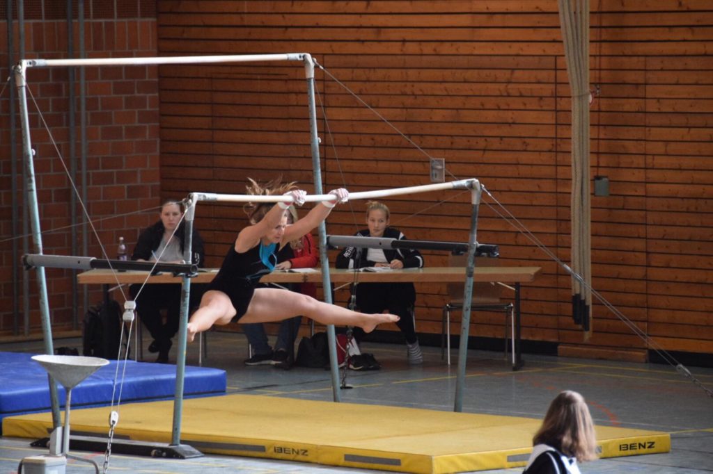 Das Team von Chiara Mair und Marvin Bach vom TSV Wertingen hatte leider weniger Glück. Chiara Mair ging am Stufenbarren mit einer neuen Übung ein Risiko ein, das leider nicht belohnt wurde. Sie landete mit ihrem Partner Marvin Bach vom TSV Wertingen daher nur auf dem 5. Platz.